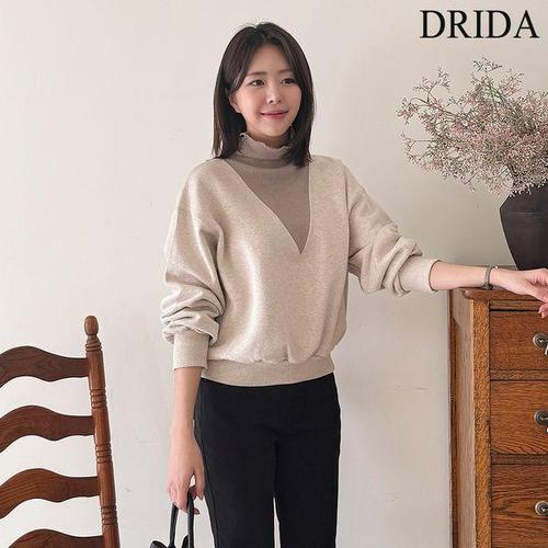 [드리다]여성 겨울 폴라 양기모 루즈핏 빅사이즈 기모 맨투맨 티셔츠 미시 캐주얼 등원 출근