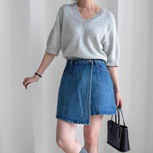[신상오픈런]여자 언발 컷팅 청치마바지 A라인 빅사이즈 미니스커트 (40724066)