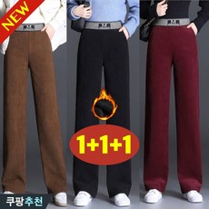 (대박난) 85kg까지 1+1 빅사이즈 여성 기모 도톰한 코듀로이 팬츠 가을 겨울 편한 융털 따뜻한 하이웨이스트 와이드 드레이프 긴바지 뽀글이 안감 방한 외출용 슬렉스 일자 바지