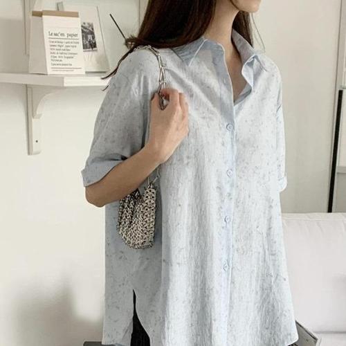 [옷자락]여성 여름 하객룩 라인 카라넥 빅사이즈 반팔 셔츠