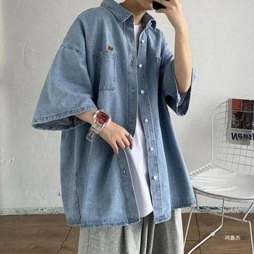 [셀러허브_여성트랜드패션]반팔 남자 오버핏 빅사이즈 데님셔츠 심플룩