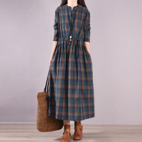 여성 루즈핏 빅사이즈 스트링 체크 셔츠 롱 원피스 치마 WFL2P9Q