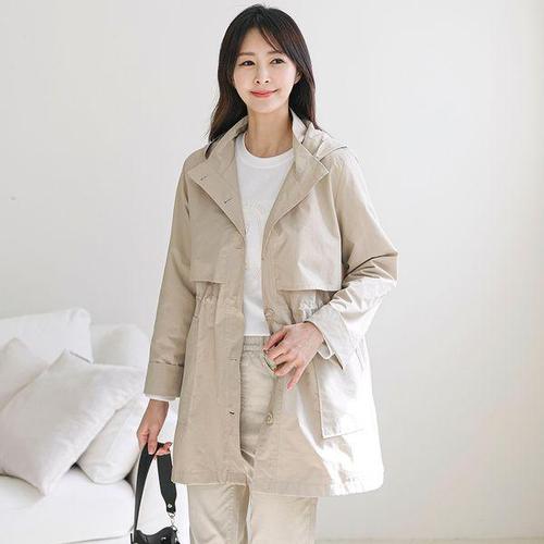 [드리다]여성 봄 여름 얇은 야상 바람막이 후드 점퍼 빅사이즈 사파리 40-50대 미시 캐주얼 출근 모임