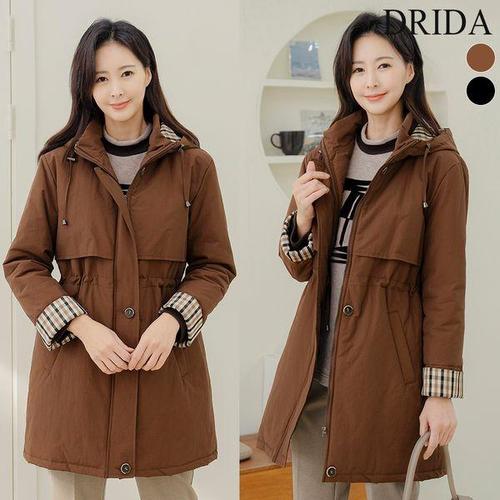 [드리다]여자 겨울 체크 누빔 빅사이즈 야상 사파리 후드 점퍼 40-50대 미시 중년여성 엄마옷 캐주얼 선..