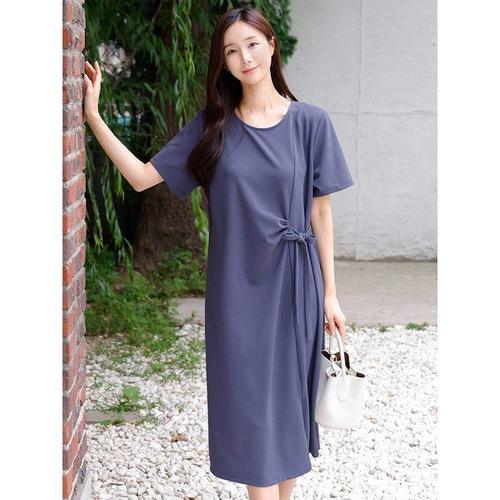 [드리다]여성 여름 셔링 리본 스판 빅사이즈 반팔 원피스 40-50대 미시 중년여성 엄마옷 등원 출근 캐주..