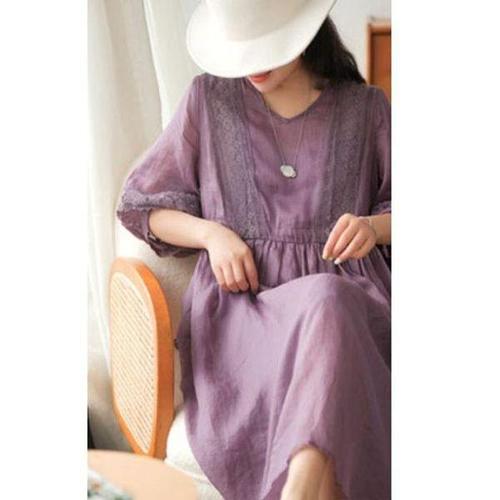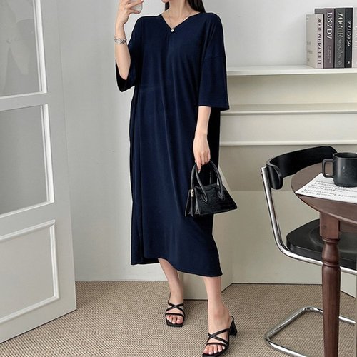[끌레아]여자반팔원피스 데일리 브이넥 무지 여름 쉬폰 롱원피스 빅사이즈