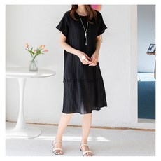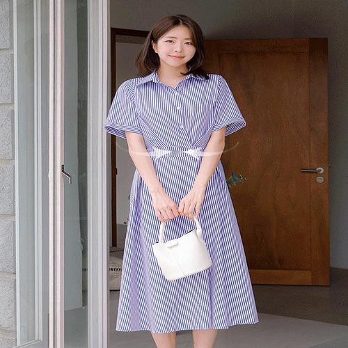 [드리다]여성 여름 스트라이프 단가라 빅사이즈 플레어 반팔 원피스 미시 캐주얼 등원 출근 모임 하객룩