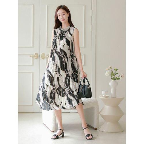[드리다]여성 여름 체인 패턴 A라인 빅사이즈 플리츠 민소매 나시 원피스 40-50대 미시 중년여성 엄마옷