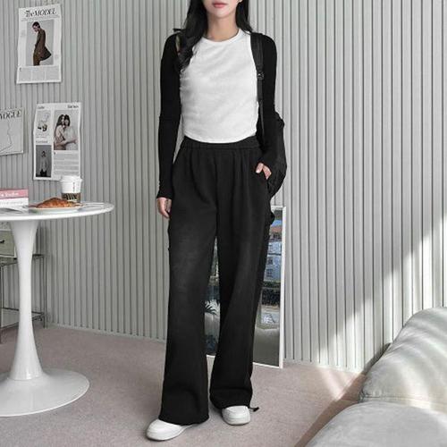 [에이치플러스몰]면바지 여성바지 스판 빅사이즈 루즈핏 밴딩 긴바지