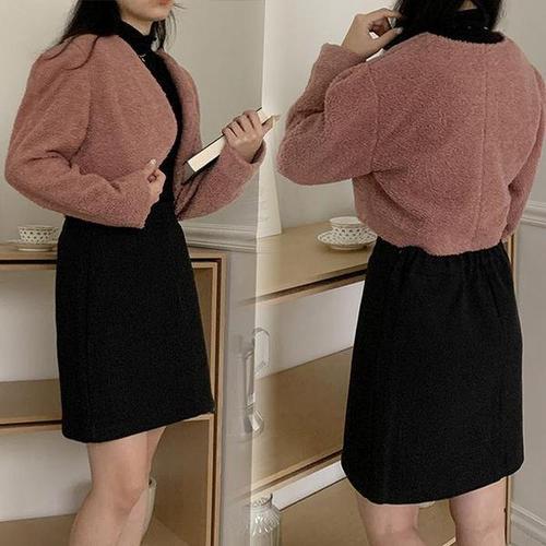 [셀러허브_여성트랜드패션]위쉬몰 MO 폼폼양털오픈크롭자켓(Q227H 510) 빅사이즈