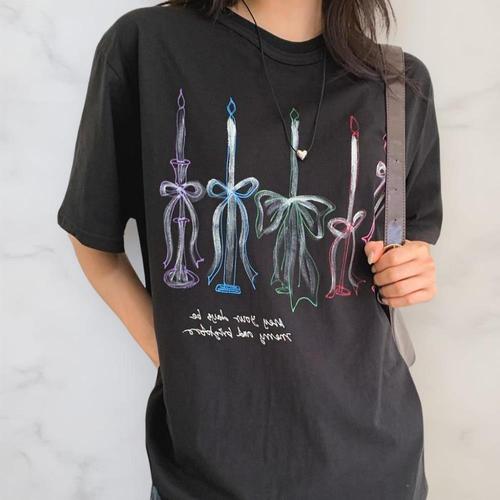 [다잇템]여성 일상용 코튼 빅사이즈 나염 반소매 티셔츠