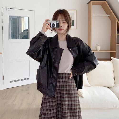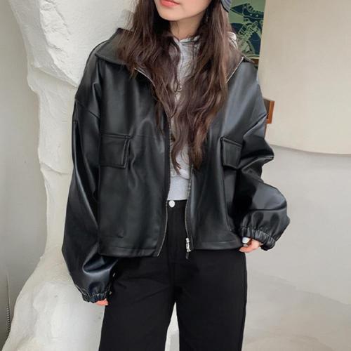 [다잇템]여자 검정 빅사이즈 클래식 레더 시크무드 자켓