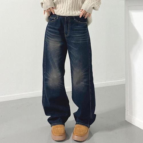 [다잇템][다잇템] 여성 속밴딩 코튼 빅사이즈 워싱 넓은 데님팬츠 가을용_23372643_588872