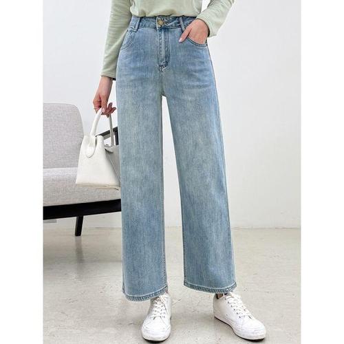 [드리다]여성 봄 빅사이즈 일자 슬림 와이드 데님 청바지 미시 캐주얼 출근 등원