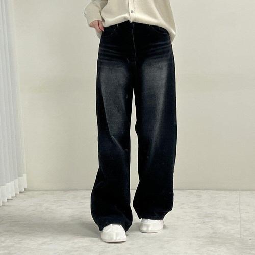 [다잇템]여자 빅사이즈 보온 검정데님 넓은 청바지