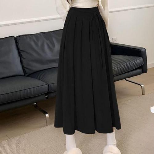 여성 니트 빅사이즈 겨을 니트스커트 플리츠 밴딩 주름 스커트 A라인 롱 스커트 롱치마 D99U