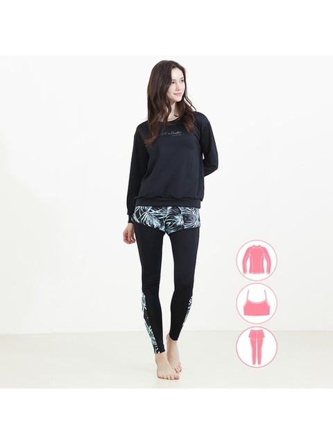 [베이직엘르] [본사] 베이직엘르 맨투맨 여성인 체형커버 빅사이즈 워터레깅스 래쉬가드 세트 BEL-S217K