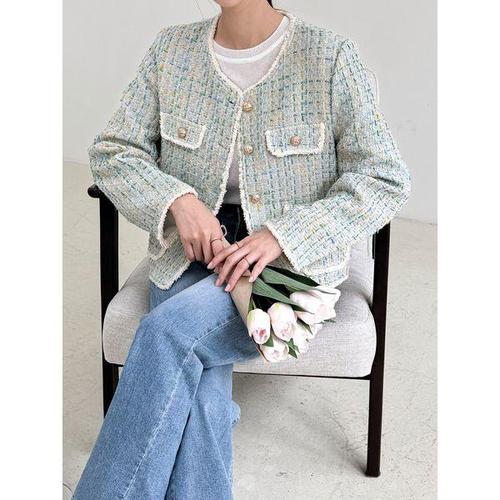 [드리다]여성 봄 노카라 빅사이즈 트위드 자켓 미시 캐주얼 오피스룩 하객 모임