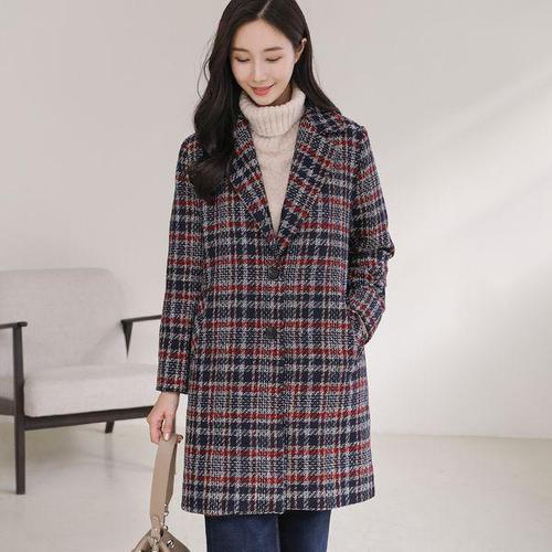 [드리다]여성 겨울 체크 울 모직 플레어 빅사이즈 하프 자켓 40-50대 미시 중년여성 엄마옷 캐주얼 출근