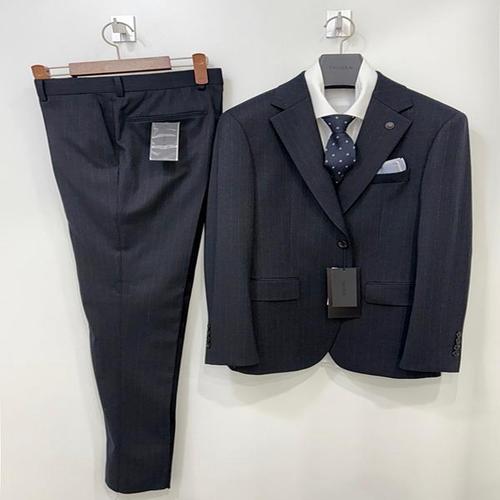 [트루젠]남자 울 50% 네이비 스트라이프 면접 예복 혼주 빅사이즈 정장 수트 양복 세트 115사이즈_JK