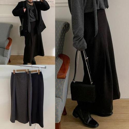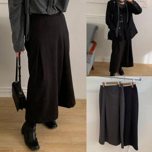 COSYEVNO 겨울 롱 플리츠 스커트 여자 a자 빅사이즈 모직 치마
