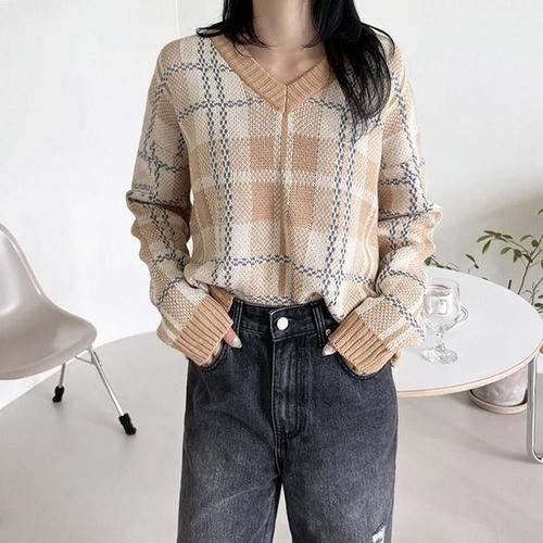 [에이치플러스몰]카라넥 빅사이즈라운드넥 브이넥 겨울 니트 루즈핏