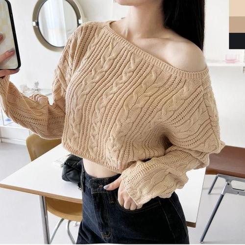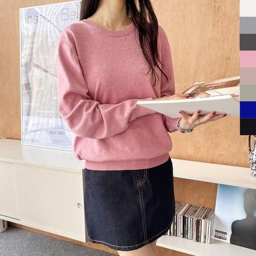 [에이치플러스몰]스웨터 오피스룩 카라넥 빅사이즈라운드넥 여성니트