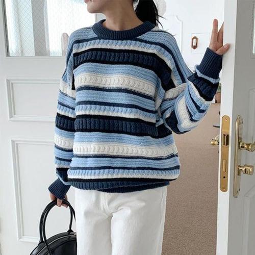 style dr 남성용 워셔블 빅사이즈 오버핏 카라 스트라이프 니트 티셔츠 스웨터