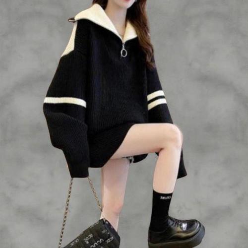 [다잇템]여성 스웨터 카라 블록컬러 빅사이즈 스웨터