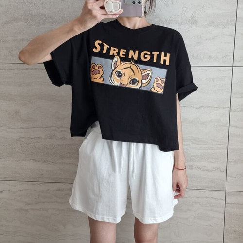 나야홍 / 빅사이즈반팔티 S449L506 라이언캐릭터나염크롭티 NS