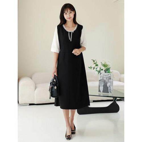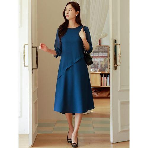 [드리다]여성 봄 가을 7부 빅사이즈 플리츠 정장 원피스 40-50대 미시 엄마옷 하객 상견례 학부모룩