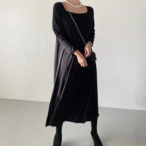 녕동 빅사이즈~150kg 여성 오버핏 라운드 긴팔 롱 원피스 캐주얼 기모 롱 맨투맨 박시핏 프릴 원피스 데일리룩