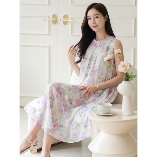G126206_(빅사이즈까지) 지지미 프릴 잠옷 원피스 나시원피스 롱원피스 프릴원피스 잠옷 슬리브리스 루즈핏 빅사이즈 지지미원피스 홈웨어