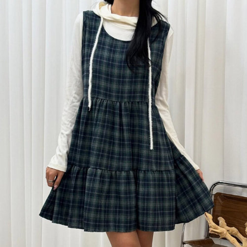 [하프클럽/]여자 체크 프릴 캉캉 레이어드 빅사이즈 기모 롱원피스
