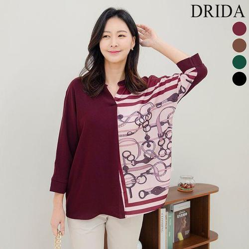 [드리다]봄 가을 여자 긴팔 프린팅 루즈핏 빅사이즈 쉬폰 블라우스 40-50대 중년여성 엄마옷 미시 하객 ..