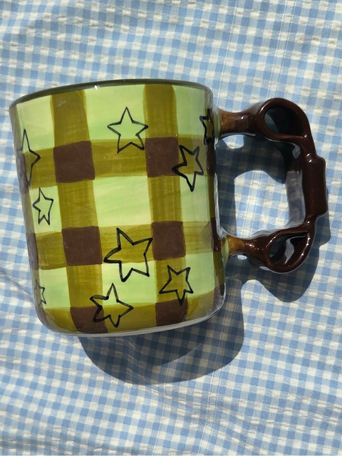 [들꽃세라믹] 그린체크 초코리본 빅머그