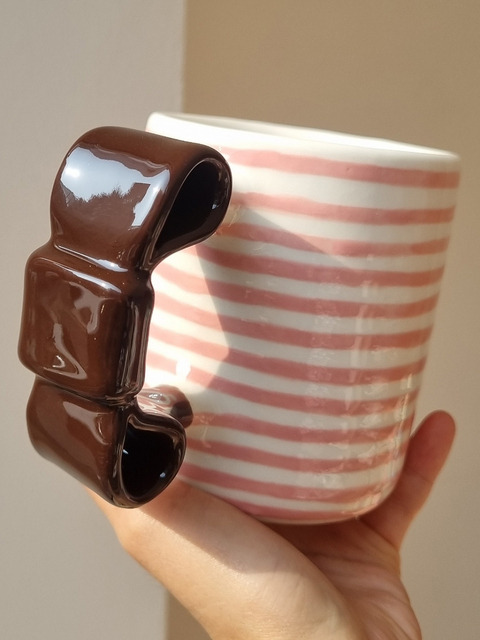 [들꽃세라믹] 핑크 스트라이프 초코 리본 빅머그