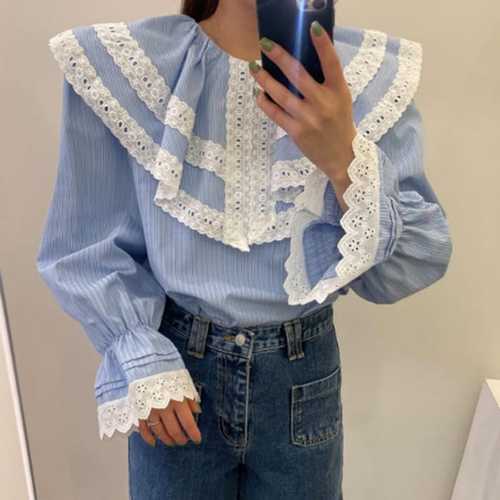 슈팅스타 / 레이스 빅카라 주름 하늘한 프렌치 셔츠
