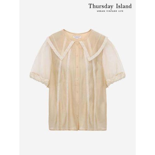 [써스데이아일랜드]빅카라 쉬어 블라우스(T244MBL260W)