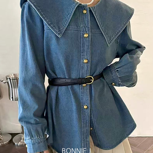 보니제이 / 빅카라 벨트 청 데님 남방 셔츠 (M-L)