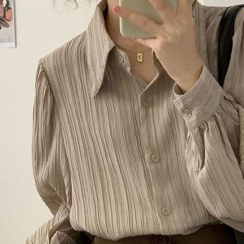 [기타브랜드]어깨 셔링 빅카라 블라우스 여성 셔츠 여자와이 겨울 남성 남방