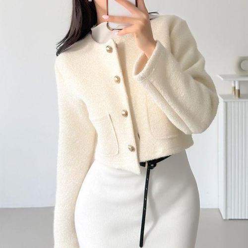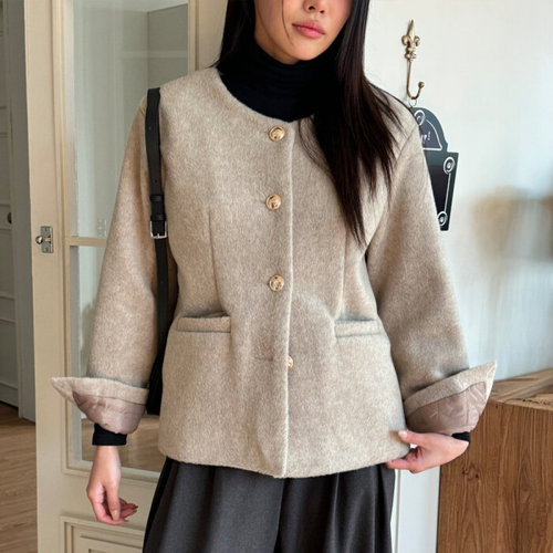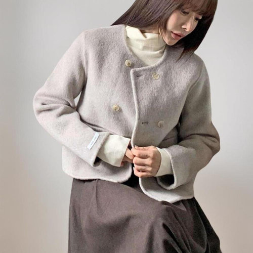 옷자락 / 여성 심플 노카라 울혼합 핸드메이드 숏 재킷