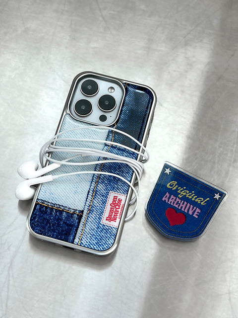 [더나인몰] 빈티지 데님 패치 라벨 [실버 맥세이프 범퍼케이스]