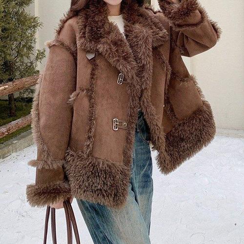 겨울 여성 루즈핏 빅카라 페이크 가죽 기모 자켓 데일리 캐주얼 빈티지 자켓 무스탕