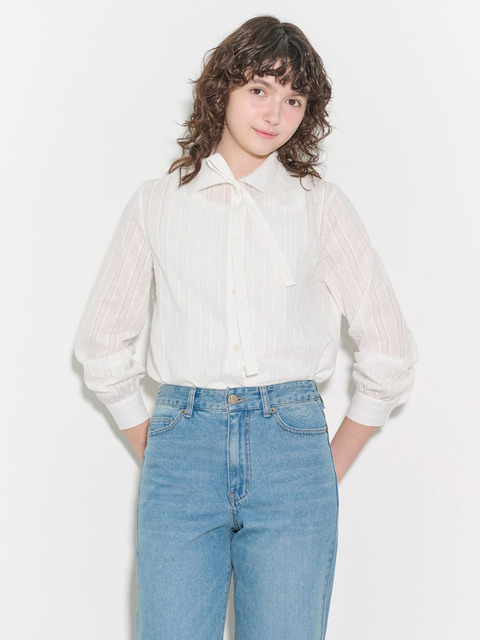 [빈폴레이디스] [B. my] 레이스 리본 타이 블라우스화이트 (BF5264N021)