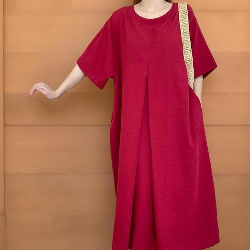 [신상오픈런]여성 빨간 롱 원피스 여름 임산부용 포켓 드레스 (34574420)