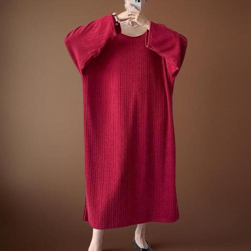 [다잇템]여성 슬릿 대형 사이즈 골지 빨간 롱드레스