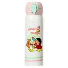 Aiying짱구 팝업식 뚜껑 빨대 겸용 보온병, 1개, 480ml, 핑크