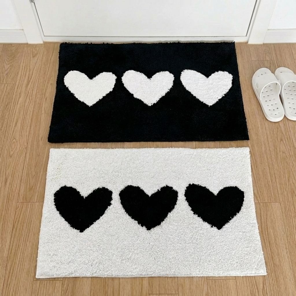 빨아쓰는 터프팅 하트러그 미니발매트 카페트 화장실 욕실발매트 현관 소파 거실 침대 키치