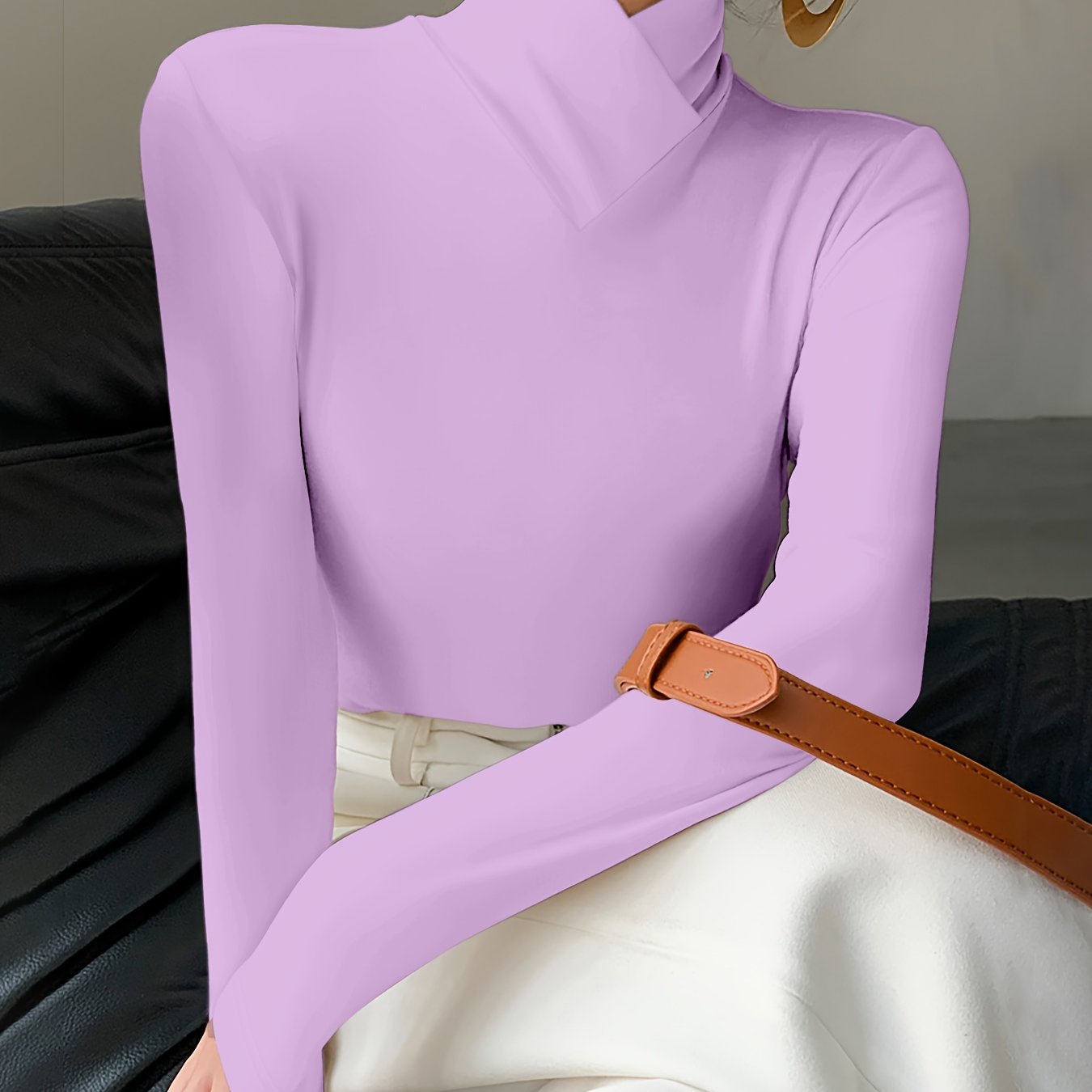 TEMU 여성을 위한 세련되고 우아한 하이넥 긴팔 풀오버 탑. 간편하고 세련된 디자인을 특징으로 합니다.